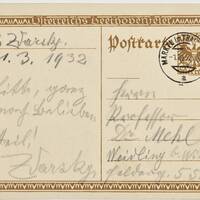 Postkarte (gelaufen) von Mathias Zdarsky, 01.03.1932