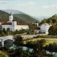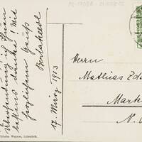 Ansichtspostkarte (gelaufen), Bildseite mit Fotografie von Wilhelm Wagner, handschriftlich beschrieben (Tinte), frankiert (5 Heller Marke)